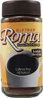 Kaffree Roma™ Roasted Grain Beverage is delicious and satisfying!Kaffree Roma™ is made from roasted malt barley with a touch of chicory. Enjoy the robust, full-bodied taste of coffee without the caffeine or tannic acids or coffee beans.